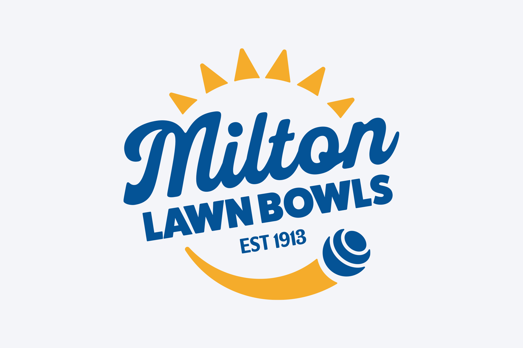 A small branding project for the local lawn bowling club! The design features a bold, friendly script for “Milton” paired with a strong, grounded sans serif for “Lawn Bowls,” creating a balance between approachability and stability. The sweeping golden curve symbolizes the smooth, flowing motion of a bowl rolling across the green, while the stylized bowl icon grounds the sport clearly in the visual. Above, a sunburst rises — a symbol of positivity, warmth, and community. It captures the vibrant, outdoor nature of the sport and suggests that Milton Lawn Bowls is a bright, welcoming place for players of all ages and backgrounds. The colour palette of deep navy and warm gold reflects both tradition and vitality, offering a sophisticated yet inviting feel, and the secondary colours create a retro vibe